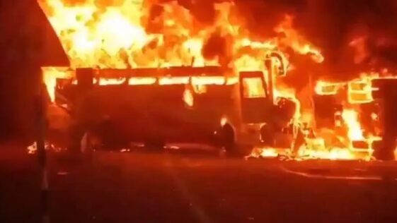 आंध्र प्रदेश के मार्कापुरम इलाके में गुरुवार को एक दर्दनाक सड़क हादसे ने सबको झकझोर दिया। एक निजी यात्री बस और ट्रक की जोरदार टक्कर के बाद बस में आग लग गई, जिससे कम से कम 14 लोगों की मौके पर ही मौत हो गई, जबकि 23 अन्य घायल हो गए। हादसा इतना भयावह था […] More