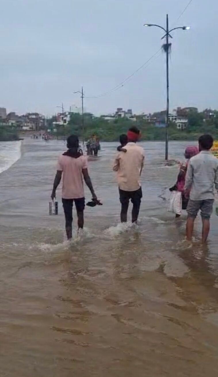 पाली, 26 अगस्त 2025 – जिले में लगातार हो रही बारिश ने जनजीवन को बुरी तरह प्रभावित किया है। शहर के बीचों-बीच बहने वाली बांडी नदी उफान पर है, जिसके कारण कई इलाकों का संपर्क टूट गया है। ऐसे में, दिहाड़ी मजदूरों के लिए यह एक बड़ी चुनौती बन गई है। अपनी रोज की मजदूरी के लिए ये मजदूर जान जोखिम में डालकर उफनती नदी को पार करने के लिए मजबूर हैं।