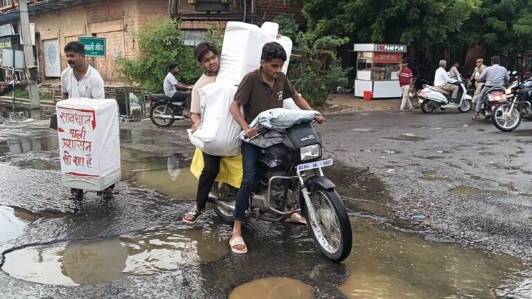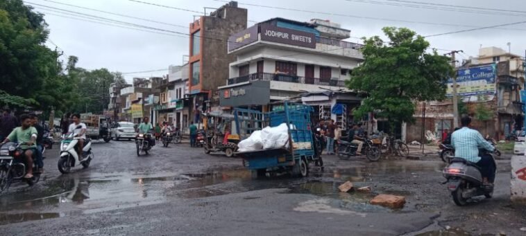 पाली। स्टेशन रोड स्थित राजा बली सर्कल के पास सड़क पर बने गहरे गड्ढों ने आमजन का आना-जाना मुश्किल कर दिया है। आए दिन वाहन चालक इन गड्ढों की वजह से दुर्घटनाओं का शिकार हो रहे हैं। बारिश में हालात और खतरनाक हो जाते हैं, जिससे राहगीरों और दुकानदारों को भारी परेशानी का सामना करना पड़ रहा है।