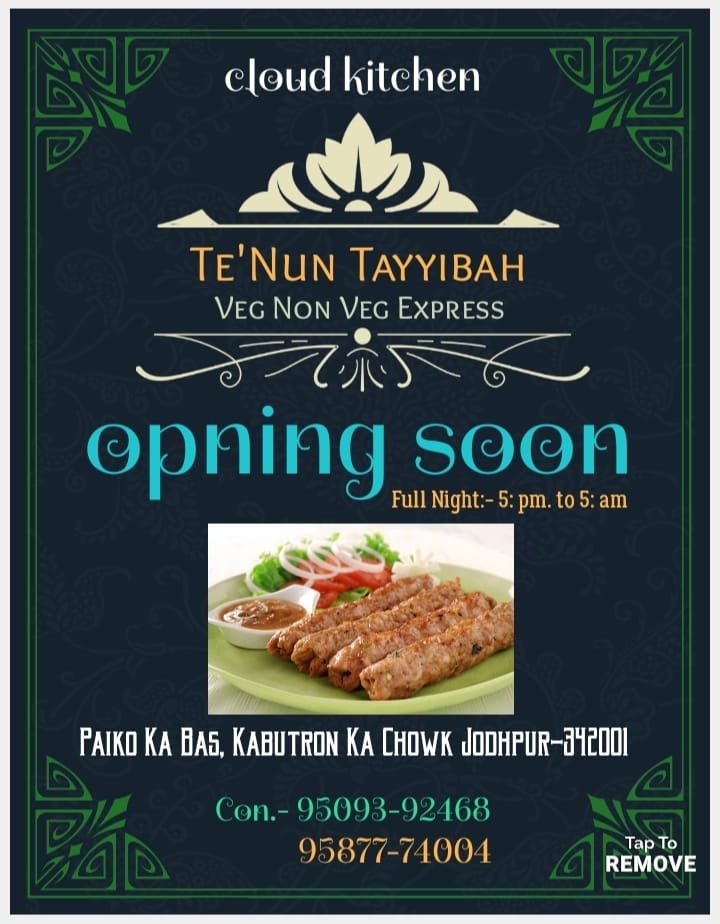 द्वारा लाजवाब पाकीज़ा बेहतरीन ज़ायके के साथ जल्द ही खुलने जा रहा है। जिसमें 400/रुपये तक के आडर्र पर फ्री होम डिलीवरी की सेवा प्रदान की जाएगी। ज़ायका की दुनियां में एक ओर नाम जल्द ही जु़ड़ने जा रहा है एक बार नाइट किंग क्लाउड किचन का जायकेदार खाना जरूर खाए ओर अपने घर परिवार ओर दोस्तों को जरूर खिलाएं।