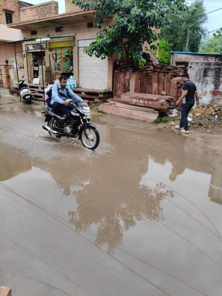 जोधपुर। जिले में पिछले चार घंटों से हो रही मूसलाधार बारिश ने किसानों की रातों की नींद उड़ा दी है। शहर से लेकर ग्रामीण क्षेत्रों तक हुई झमाझम बरसात से खेतों में पानी भर गया है, जिससे कटाई के लिए तैयार पकी-पकाई खरीफ फसलें बुरी तरह प्रभावित हुई हैं और किसानों को भारी आर्थिक नुकसान उठाना पड़ रहा है।