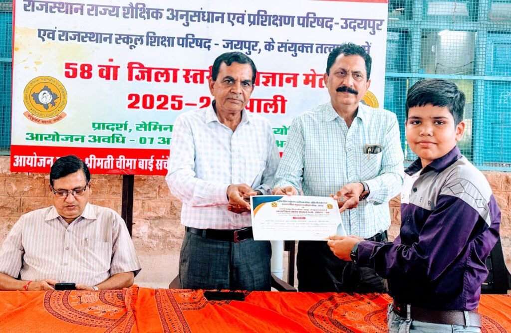 श्रीमती चीमाबाई संचेती राजकीय बालिका उच्च माध्यमिक विद्यालय, पैकेज कॉलोनी पाली में आयोजित 58वें जिला स्तरीय विज्ञान मेले में दीप विद्या आश्रम के कक्षा 6 के छात्र चिराग बारुपाल ने अपनी अद्भुत सोच और संवेदना से सबका दिल जीत लिया।