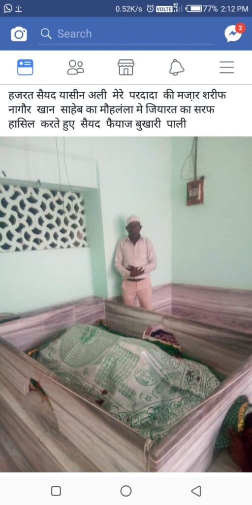 आपके साथ मुल्क ए अरब़ से आए मुरीदीन में सैय्यद यासीन अली शाह रहमतुल्लाह अलैय नागौर शहर के मौहल्ला खान साहबों का बास मदीना मस्जिद में मुख्य गेट के पास मजार शरीफ में आराम कर रहे हैं।ओर आम आदमी उनके यहां जियारत कर फैज़ हासिल कर रहें हैं।