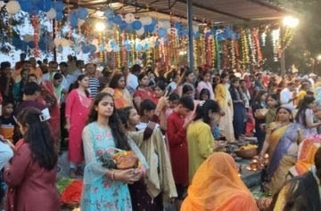 बिहारी घाट को दीपकों की आकर्षक रोशनी से सजाया गया। साथ ही बिहारी समाज की युवतियों ने लखोटिया परिसर में जगह-जगह सुंदर रंगोलियां बनाईं। इन रंगोलियों के बीच युवा और बच्चे सेल्फी लेते नजर आए।