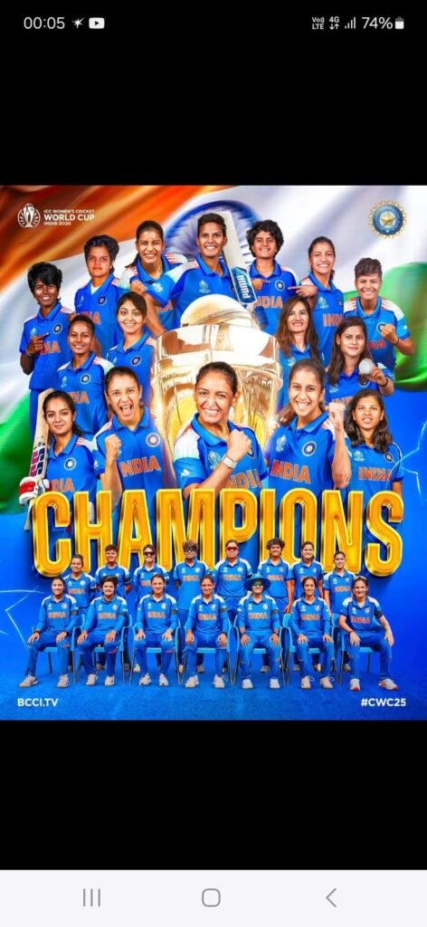 भारत की बेटीयों ने आई सी सी वर्ल्ड कप में साउथ अफ्रीका को पछाड़ कर 52से जीतकर भारत का गौरव बढ़ाया।