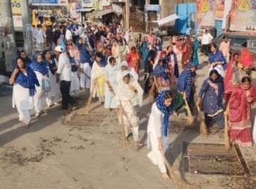 नगर कीर्तन में सिख समाज की महिलाओं ने स्वच्छता का संदेश दिया। महिलाएं हाथों में झाड़ू लेकर नगर कीर्तन के आगे-आगे सफाई करती हुई चल रही थीं। वहीं, पंच प्यारे गुरु नानक देव जी के नाम के जयकारे लगाते हुए श्रद्धा और भक्ति का माहौल बना रहे थे। पूरे मार्ग में श्रद्धालुओं ने पुष्प वर्षा कर नगर कीर्तन का स्वागत किया।