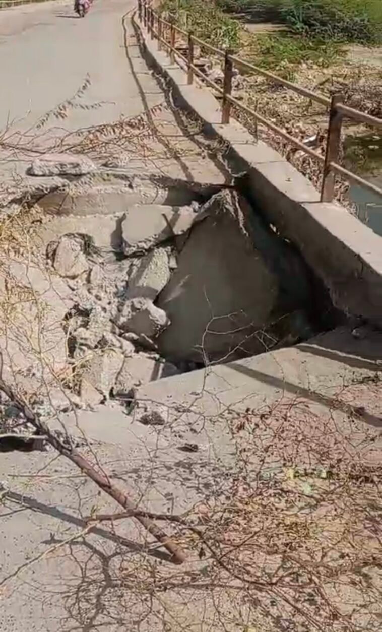 राहगीर खतरे में: पुलिया के क्षतिग्रस्त होने से बड़ी दुर्घटना का खतरा मंडरा रहा है, विशेष रूप से भारी वाहनों के गुजरने पर।