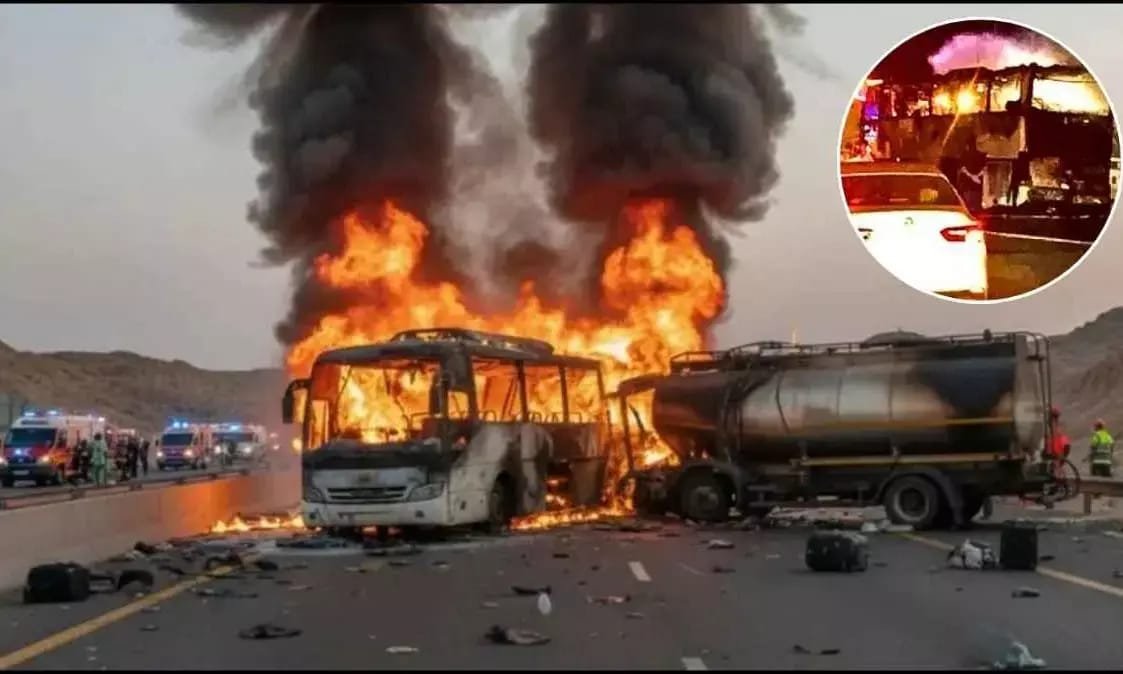 रियाद/नई दिल्ली। सऊदी अरब में सोमवार रात एक भीषण सड़क हादसे में कम से कम 42 भारतीयों की मौत होने की आशंका है। यह हादसा मक्का से मदीना जा रही उमराह यात्रियों की बस के एक डीज़ल टैंकर से टकराने के बाद हुआ। हादसा इतना भीषण था कि बस क्षतिग्रस्त होकर आग की लपटों में घिर गई।
