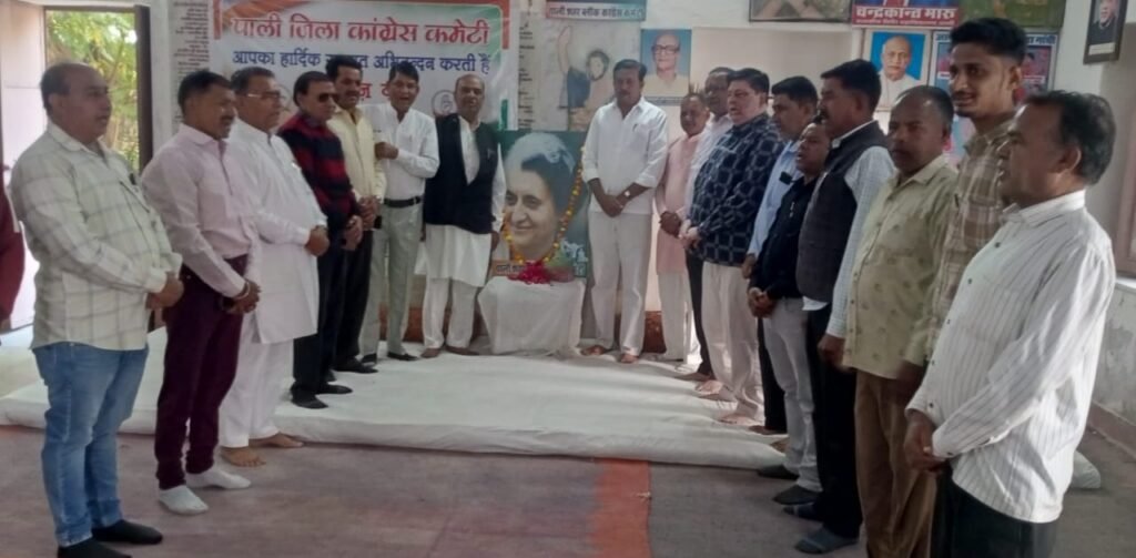 आज कांग्रेस भवन पाली में पाली शहर ब्लॉक कांग्रेस कमेटी के अध्यक्ष हकीम भाई के नेतृत्व मे भारत रत्न पूर्व प्रधानमंत्री स्वर्गीय श्रीमती इंदिरा गांधी जी की जयंती पर कांग्रेस जनो ने इंदिरा जी गांधी की तस्वीर पर पुष्प अर्पित श्रद्धांजलि दी।