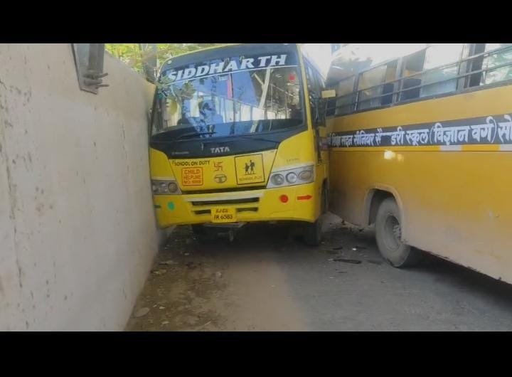 सूचना पर पुलिस मौके पर पहुंची और दोनों बसों को थाने में सीज कर लिया। हेड कांस्टेबल लालाराम ने बताया कि किसी भी बच्चे को गंभीर चोट नहीं आई है और सभी सुरक्षित हैं। हादसे के बाद बच्चे सहमे हुए नजर आए, जबकि परिजन भी मौके पर पहुंचकर उन्हें संभालते रहे। फिलहाल दुर्घटना के कारणों की जांच जारी है।