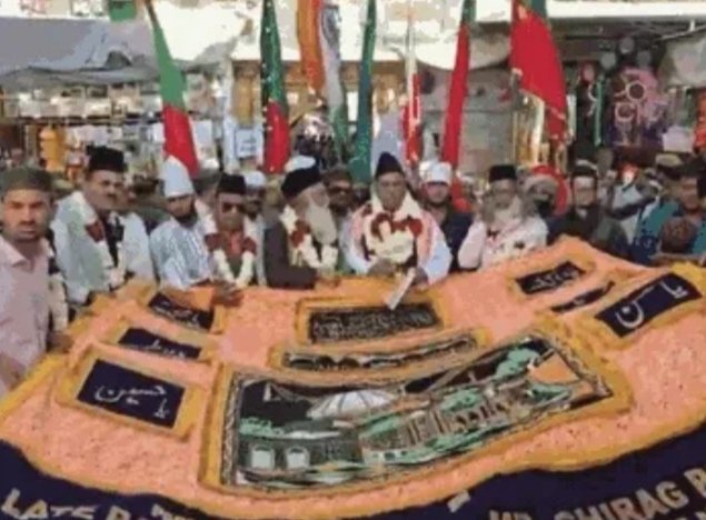 अजमेर। ख्वाजा मोइनुद्दीन चिश्ती गरीब नवाज़ के 814वें सालाना उर्स के मौके पर प्रधानमंत्री नरेंद्र मोदी की ओर से दरगाह शरीफ में चादर पेश की गई। केंद्रीय अल्पसंख्यक कार्य मंत्री किरेन रिजिजू प्रधानमंत्री की ओर से भेजी गई चादर लेकर अजमेर पहुंचे और परंपरानुसार चादर पेश की।