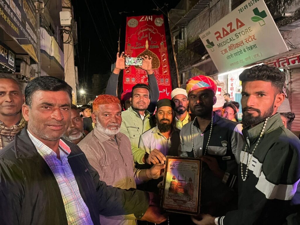 ख्वाजा मोइनुद्दीन हसन चिश्ती रहमतुल्लाह अलैय के 814 वें उर्स ए पाक के मौके पर नवलखा रोड़ पर RCI ग्रुप के द्वारा चादरें मुबारक का शानदार इस्तकबाल किया गया।