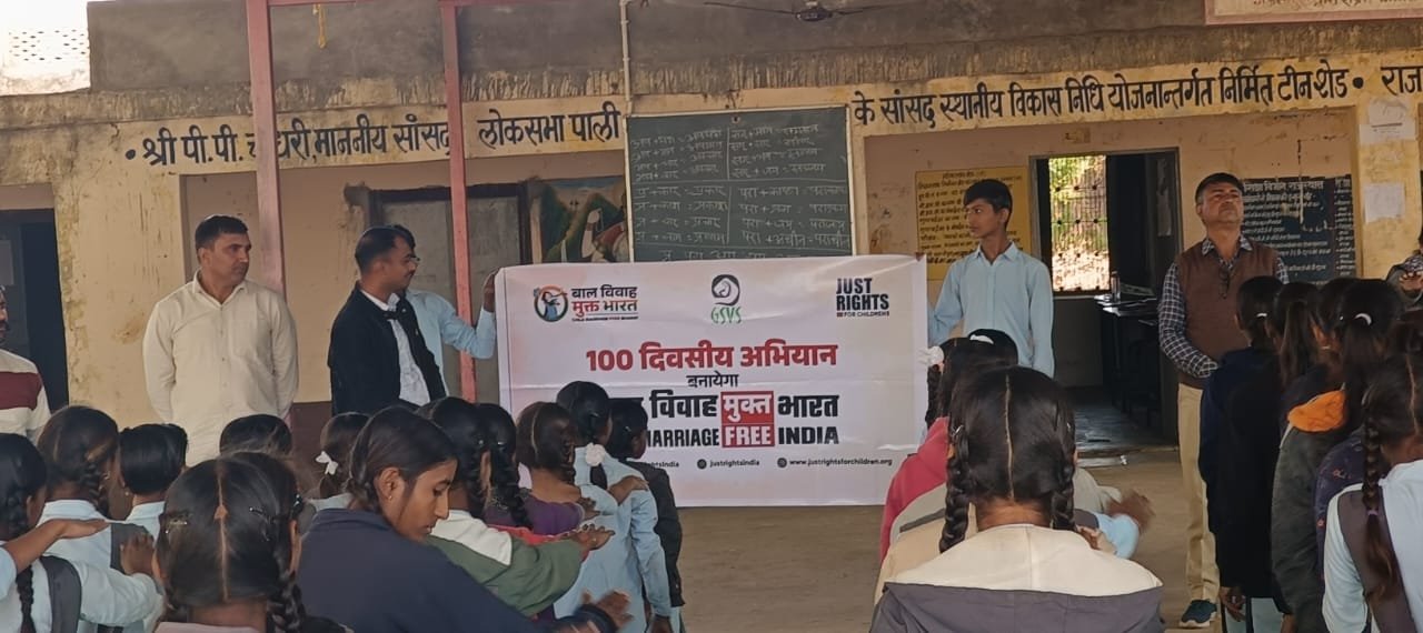 पाली गजनीपुरा। राजकीय उच्च माध्यमिक विद्यालय, गजनीपुरा में ‘जस्ट राइट्स फॉर चिल्ड्रन’ और ‘जीएसवीएस’ के संयुक्त तत्वावधान में बाल विवाह मुक्त भारत अभियान के तहत एक विशेष जागरूकता एवं शपथ ग्रहण कार्यक्रम का आयोजन किया गया।