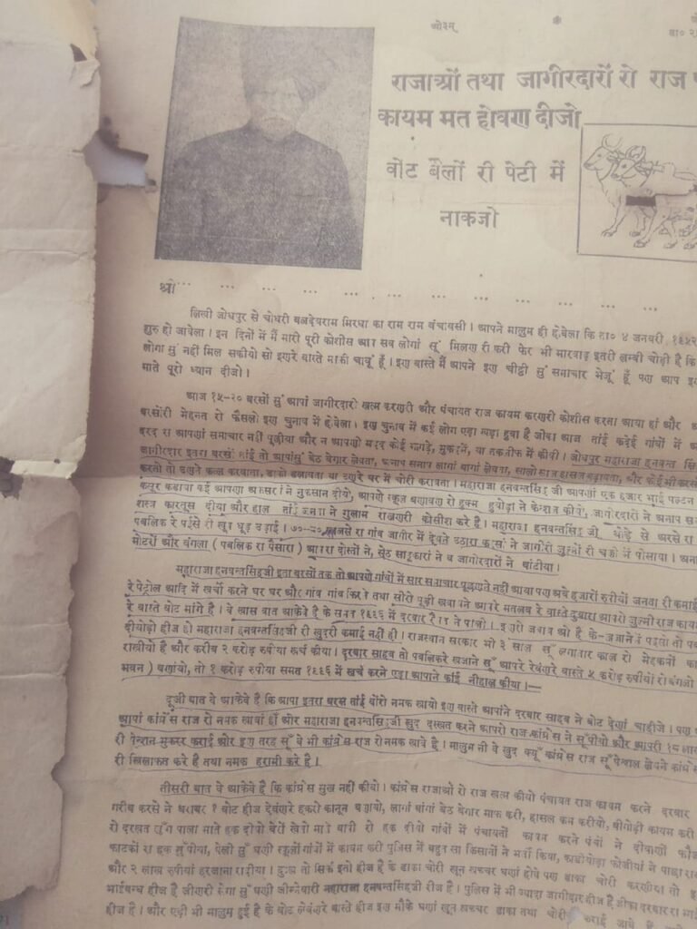 आपकी आवाज पर प्रदेश ओर देश के किसान एकजुट होकर कांग्रेस के पक्ष में मतदान किया करते थे।ओर एक आव्हान पर लाखों की संख्या में किसान इकठ्ठा हो जाया करते थे।आज भी किसान वर्ग सहित सभी वर्गों के लोग किसान पुरोधा स्वर्गीय बलदेव राम जी मिर्धा को सम्मान ओर श्रध्दा से याद करतें हैं।बहुत ही बिरले होते हैं ऐसे शख्स जो जन्मों जन्मों तक दिलों में राज करते हैं।*RJ22 News Pali चीफ़ एडीटर सैय्यद फैयाज बुखारी**********