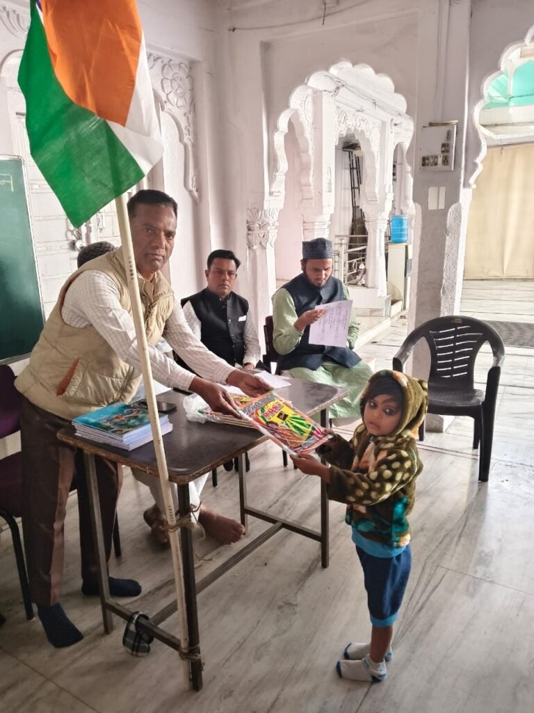 मदरसा सदर हाजी मोहम्मद शरीफ एवं सेकेट्री मोहम्मद सलीम ने कहा कि संविधान हमें सिखाता है कि इल्म, इंसाफ,