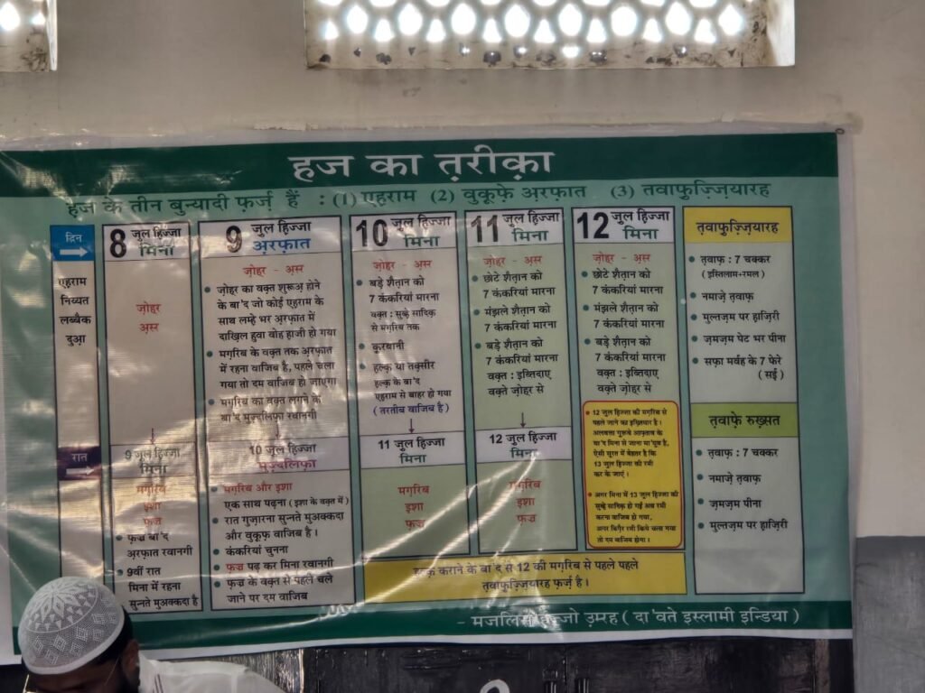 की जियारत ओर हज के अरकान अदा करने वाले हाजी साहेबान को प्रक्षिशित मौलाना द्वारा हज के दौरान सभी अरकान अदा करने की पुरी जानकारी दी गई।ओर तमाम हज ए बैतुल्लाह के