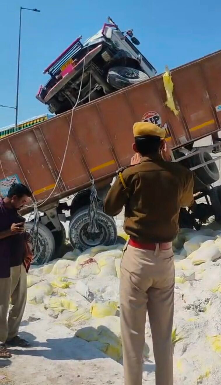 तेज रफ्तार बना काल, पुलिया तोड़ नीचे गिरा ट्रेलर