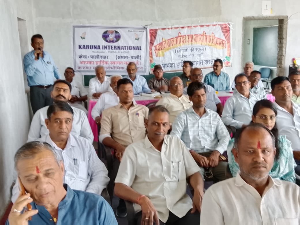 पाली। शहर के सुदर्शन बाल निकेतन स्कूल में करुणा क्लब प्रभारियों की जिला स्तरीय वार्षिक बैठक का आयोजन किया गया। कार्यक्रम का शुभारंभ अतिरिक्त जिला शिक्षा अधिकारी राजेंद्र प्रसाद के मुख्य आतिथ्य एवं जिला अध्यक्ष जयशंकर त्रिवेदी की अध्यक्षता में करुणा प्रार्थना के साथ हुआ।