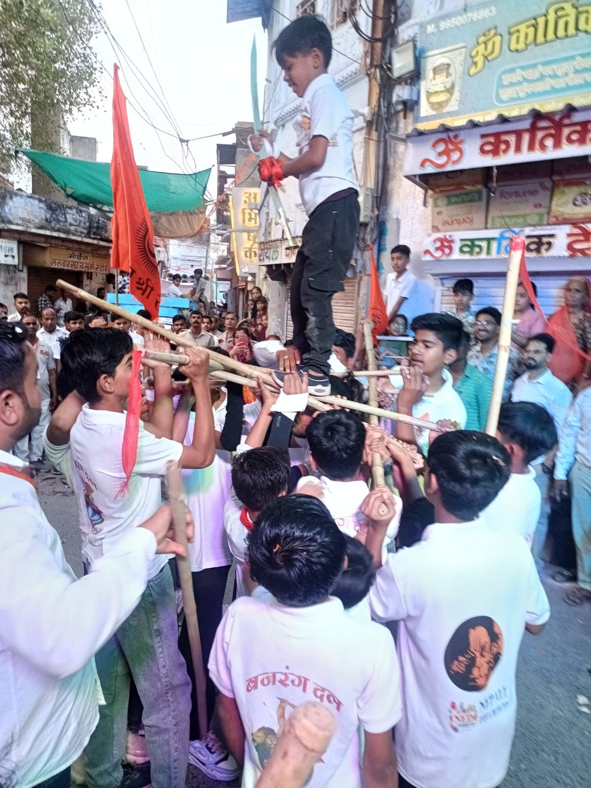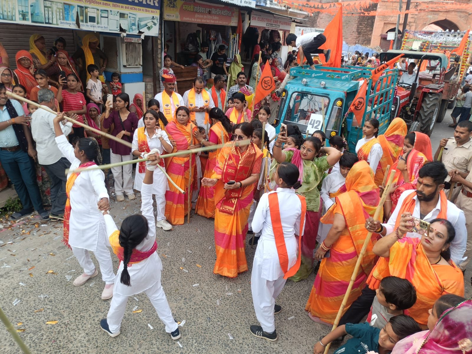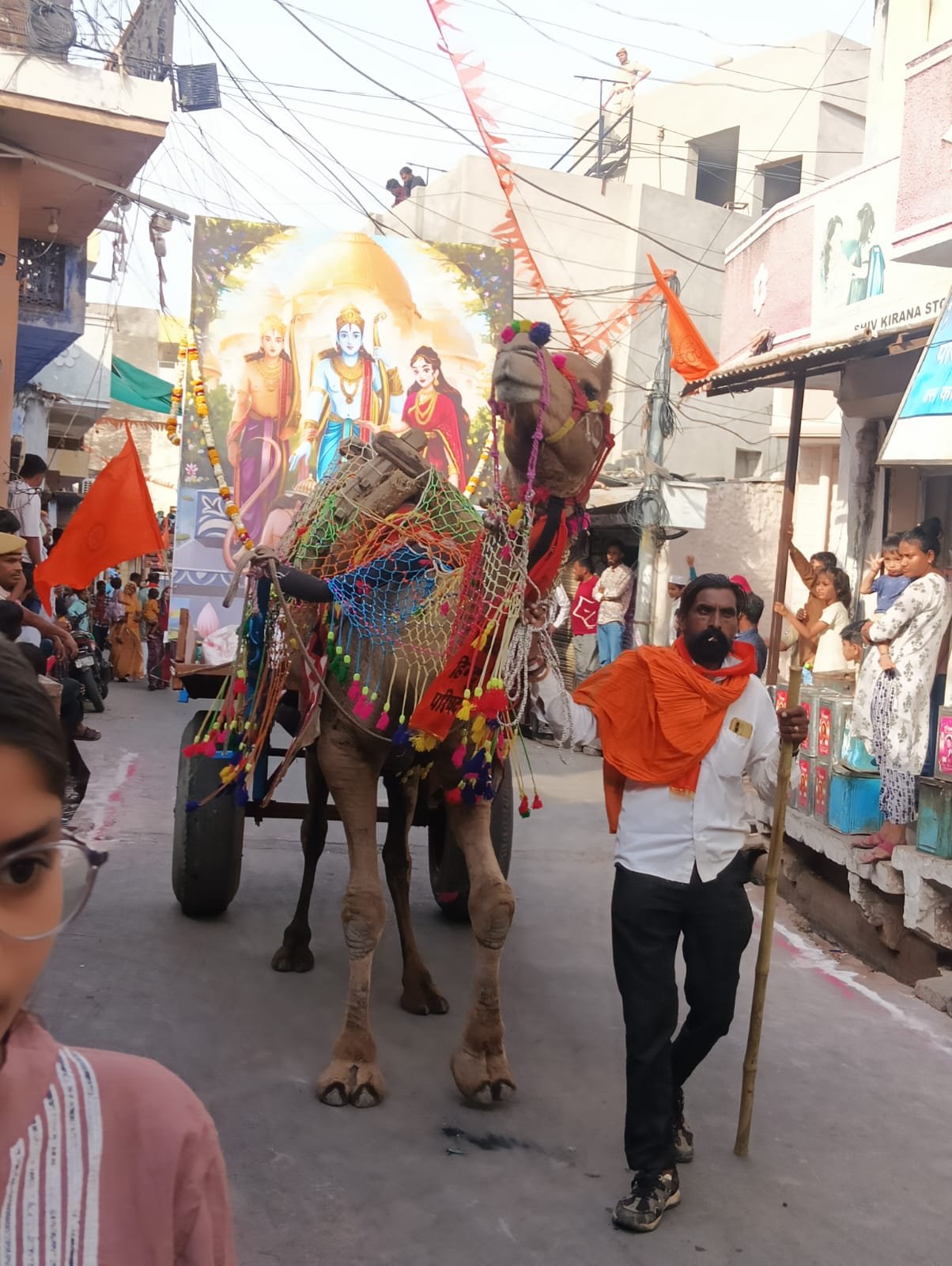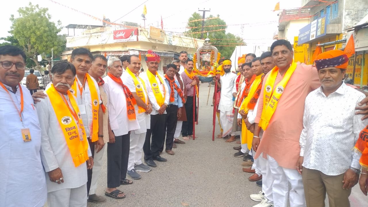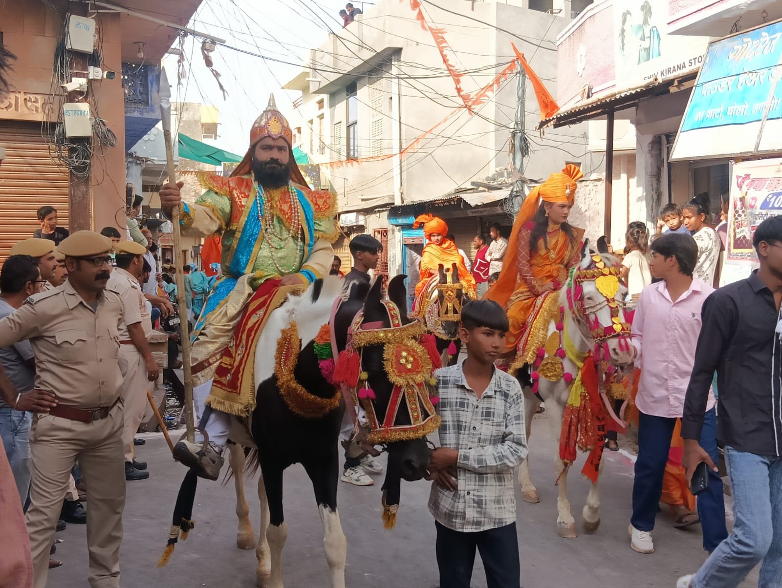 शोभायात्रा जैतारणिया गेट, ढाल की गली, जुम्मा मस्जिद, चारभुजा मंदिर चौराहा, धानमंडी, सब्जी मंडी, सिनेमा हॉल तिराहा और राजपोल गेट होते हुए बस स्टैंड स्थित श्री जय वीर हनुमान मंदिर पहुंची, जहां महाआरती के बाद प्रसादी का वितरण किया गया।