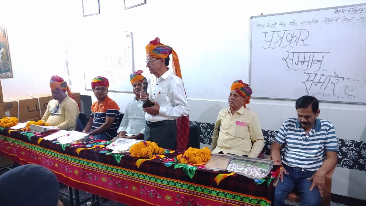 सोजत। श्री विजय आदर्श माध्यमिक विद्यालय में लोकतंत्र के पहरियों के सम्मान में आयोजित समारोह गरिमामय वातावरण में संपन्न हुआ। कार्यक्रम में मुख्य अतिथि पूर्व जिला शिक्षा अधिकारी नाहर सिंह राठौड़ ने कहा कि समालोचना व्यक्ति के व्यक्तित्व को निखारती है, वहीं प्रतिभाओं का सम्मान अन्य लोगों को भी श्रेष्ठ कार्य करने की प्रेरणा देता है। उन्होंने वर्तमान दौर में इलेक्ट्रॉनिक, प्रिंट और सोशल मीडिया में पारदर्शिता को अत्यंत आवश्यक बताया।
