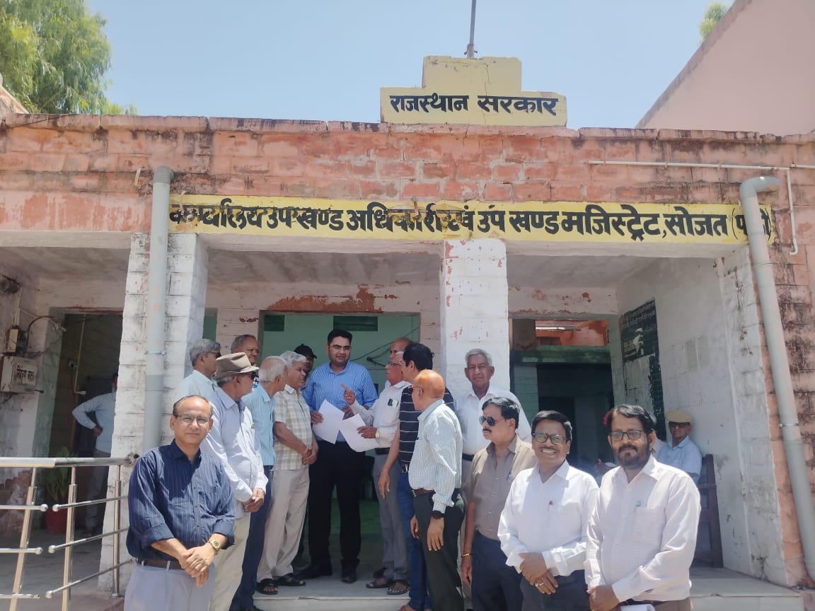 ज्ञापन सौंपने के दौरान पेंशनर समाज अध्यक्ष लालचंद मोयल, वरिष्ठ नागरिक समिति अध्यक्ष सुरेश ओझा, सोजत सेवा मंडल मंत्री पुष्पतराज मुणोत, अभिनव कला मंच सचिव चेतन व्यास, उपाध्यक्ष श्यामलाल व्यास, सेवानिवृत्त प्रधानाचार्य महेंद्र मेहता, समाज कल्याण फेडरेशन ऑफ इंडिया के प्रदेश अध्यक्ष रामस्वरूप भटनागर सहित कई गणमान्य नागरिक उपस्थित रहे।