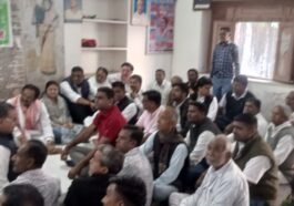 in Pali News पाली जिला कांग्रेस कार्यालय में कांग्रेस के 141वें स्थापना दिवस पर ध्वजारोहण कर कार्यक्रम को संबोधित करते जिला अध्यक्ष शिशुपाल सिंह राजपुरोहित व अन्य कांग्रेस नेता।