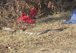 in Pali News पाली में मंदिर के बाहर अठखेलियाँ करते दिखा 10 फीट लंबा नाग-नागिन का जोड़ा, श्रद्धालु रह गए हैरान।