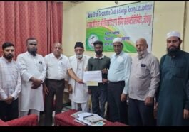 in राज्य जोधपुर: ईद मिलादुन्नबी ब्लड कैम्प के लक्की ड्रॉ विजेता अफजल को सौंपा उमराह हवाई टिकट का चैक।