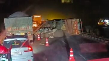 in Pali News सोजत NH-162 पर बड़ा हादसा टला: मवेशी बचाने के चक्कर में पपीता से भरा ट्रक पलटा, हाईवे पर लगा लंबा जाम।