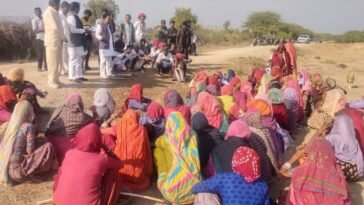 in Pali News मनरेगा बचाओ संग्राम” के तहत सुमेरपुर विधानसभा क्षेत्र में मनरेगा श्रमिकों से संवाद करते पाली जिला कांग्रेस अध्यक्ष शिशुपाल सिंह निम्बाडा व कांग्रेस नेता।